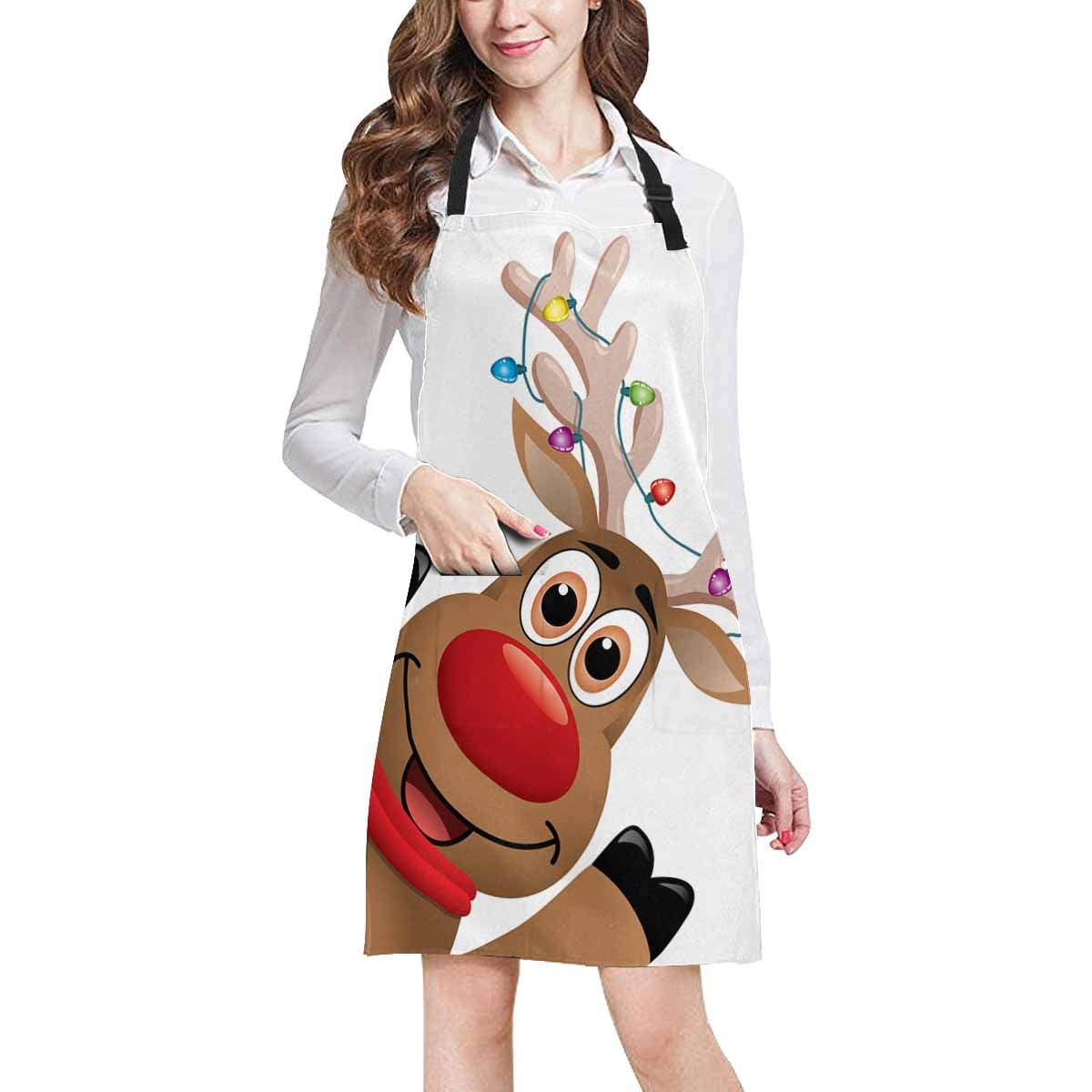 ASHLEIGH Funny Red Nosed Reindeer Christmas Xmas Unisex Adjustable Bib Apron with Pockets for Women Men Girls Chef for Cooking Baking Gardening Crafting - The products we sell are vibes products and character is guaranteed. We guarantee our goods are authentic. subsequent to a broad complementary of colors and sizes we hope you locate one that suits your taste.