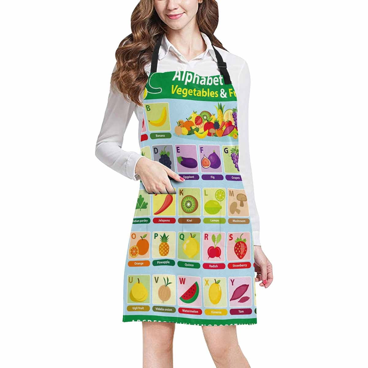 Good Chance of ASHLEIGH Funny English Alphabet with Fruits Vegetables for Kids Student Adjustable Bib Apron with Pockets Commercial Restaurant and Home Kitchen Apron for Women Men