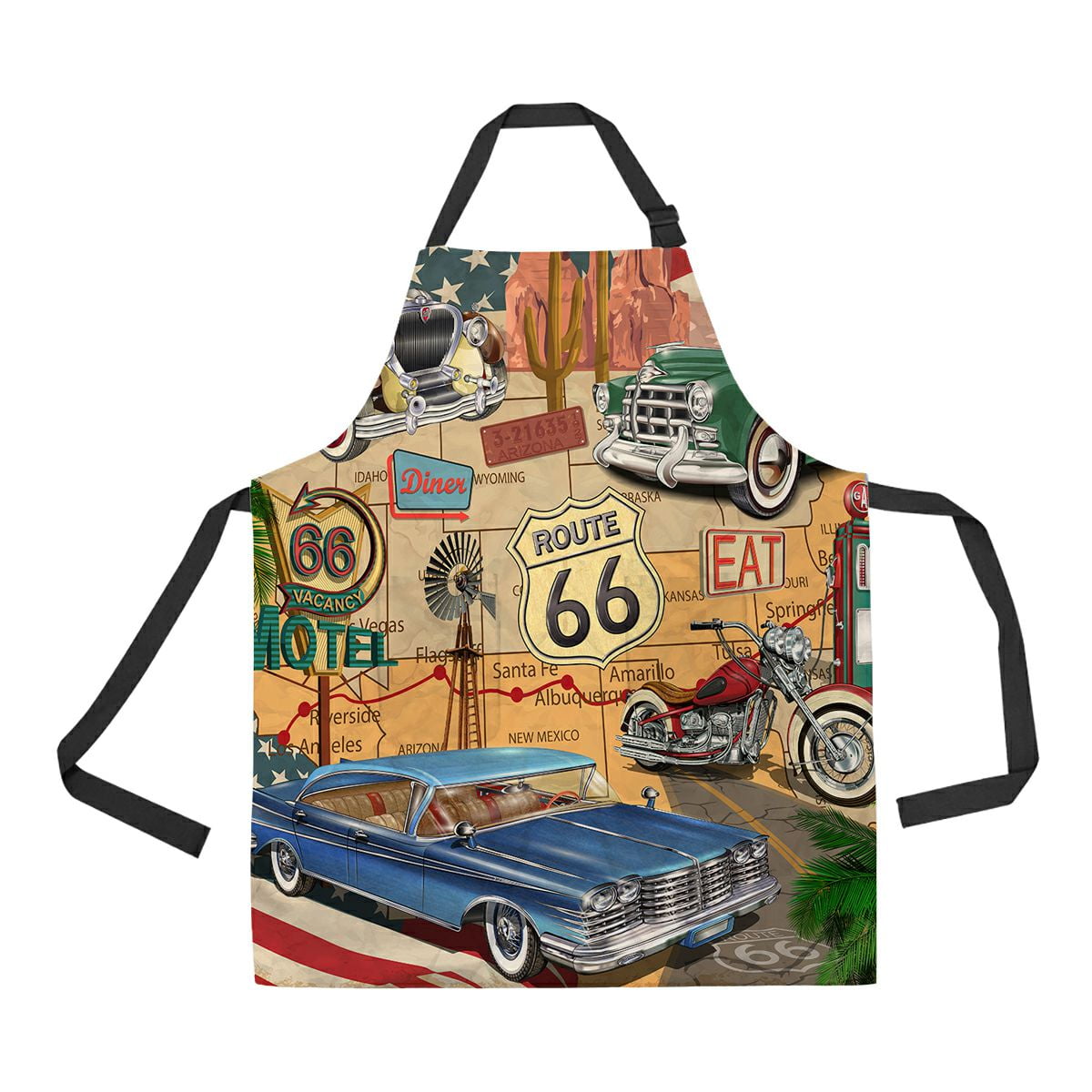 Limited Chance of ECZJNT Vintage Route 66 poster Adjustable Bib Kitchen Apron with Pockets for Women Men