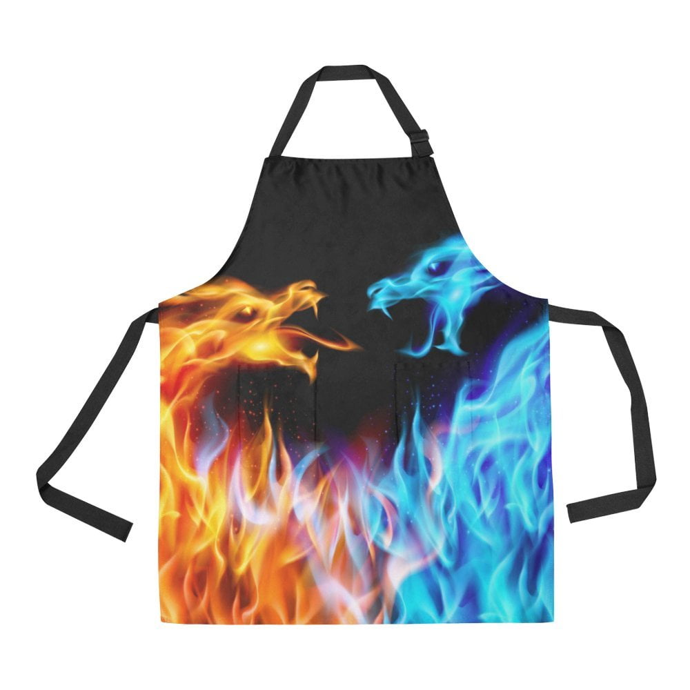 ASHLEIGH Blue Red Fiery Dragons Apron BBQ Aprons Kitchen Aprons With Two Pockets For Women Men - The products we sell are character products and vibes is guaranteed. We guarantee our goods are authentic. once a broad another of colors and sizes we hope you find one that suits your taste.